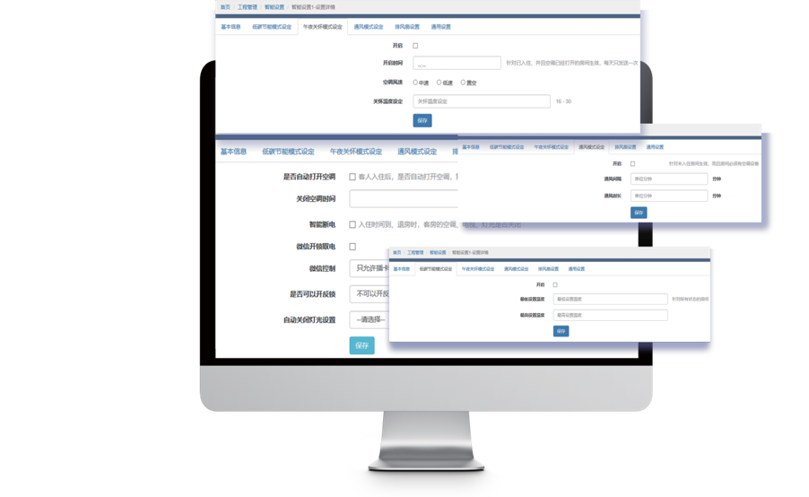 根據每個(gè)不(bù)同房(fáng)型可(kě)有(yǒu)針對(duì)性的(de)房(fáng)間(jiān)溫度設置最低(dī)和(h‌é)最高(gāo)閥值,當 設置溫度是(shì)超過閥值的(de)時(shí)候,系統自(zì)動歸位。
